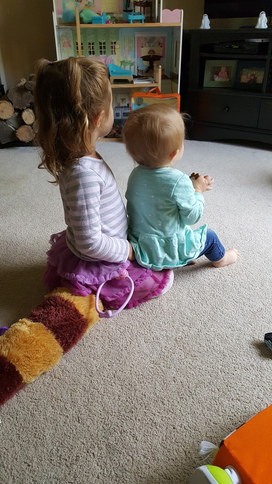 But then a few minutes later, Shay went up to Jules and tried taking her toy and Jules held on tight and didn't let go. Shay looks at me and starts wailing and boy, did it break my heart but I didn't cave. I looked and Jules and said, "Maybe we can give her a similar toy and let her play with you that way she doesn't feel left out?" And Jules agreed and ended up giving Shay an identical toy and she was satisfied.